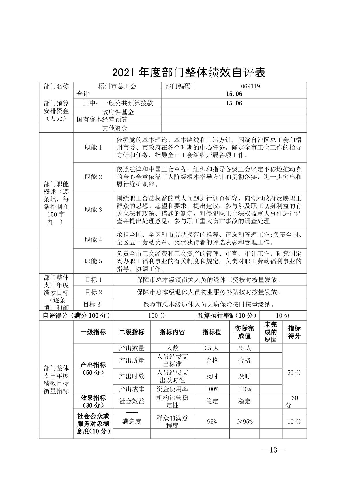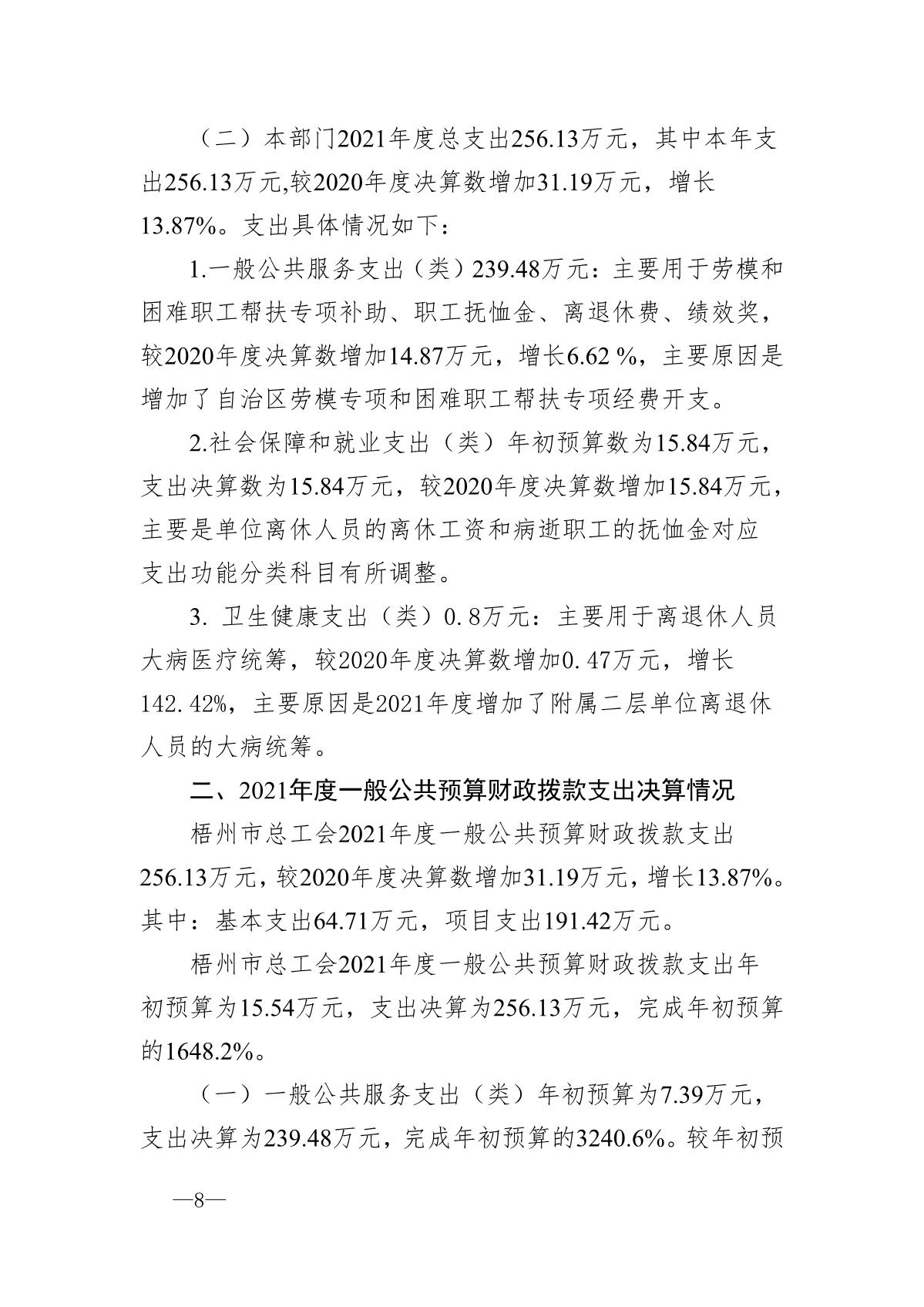 梧州市總工會(huì)2021年度部門決算公開說明