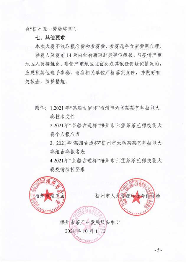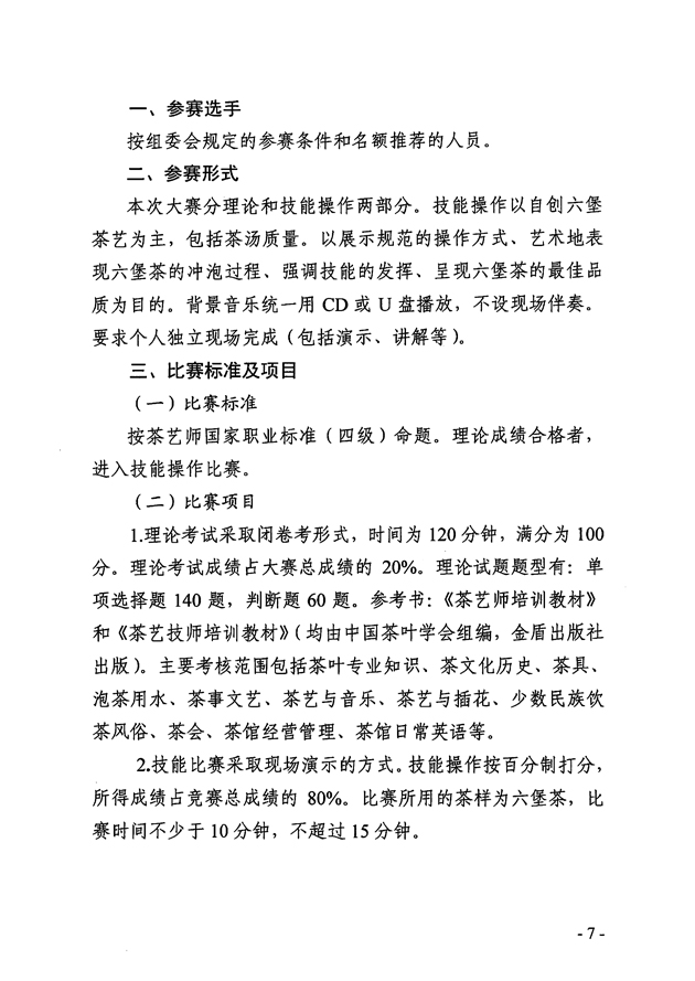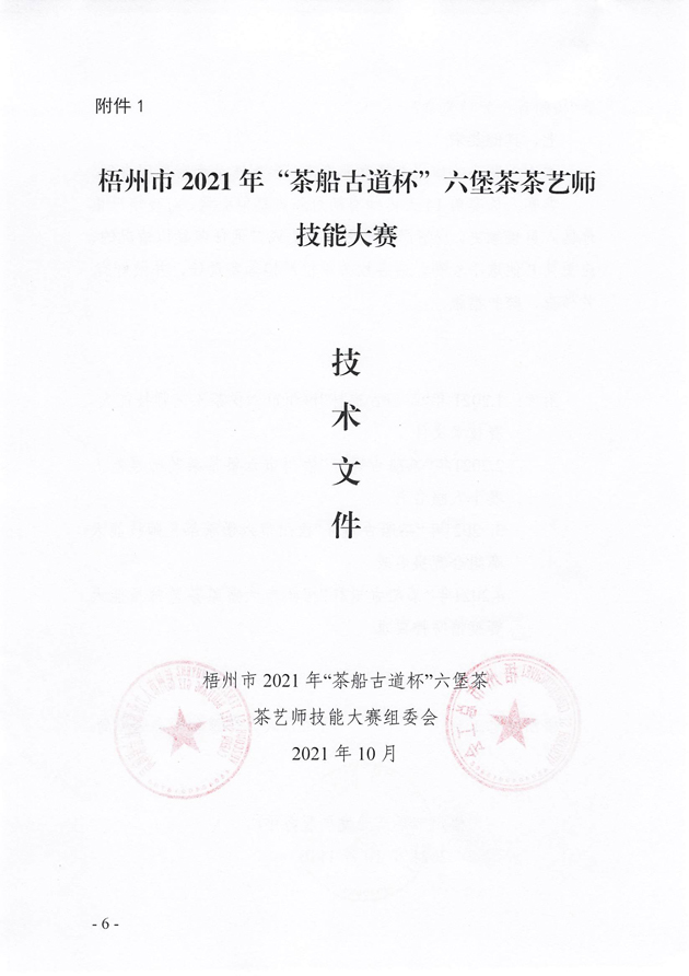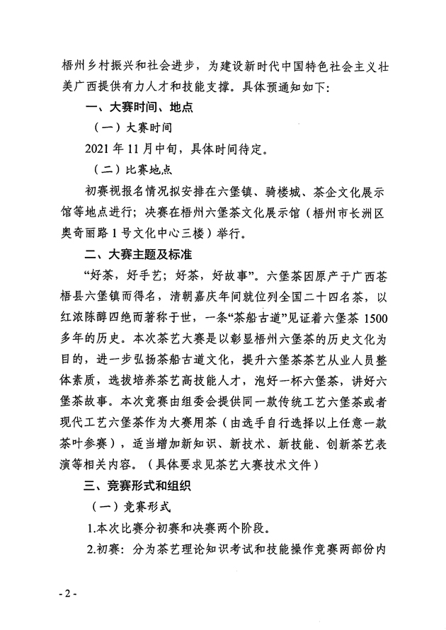 關于舉辦2021年梧州市“茶船古道杯”六堡茶茶藝師技能大賽的預通知