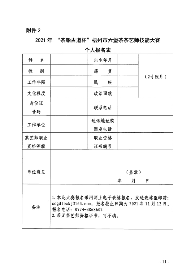 附件2-2021年 “茶船古道杯”梧州市六堡茶茶藝師技能大賽個人報名表.docx