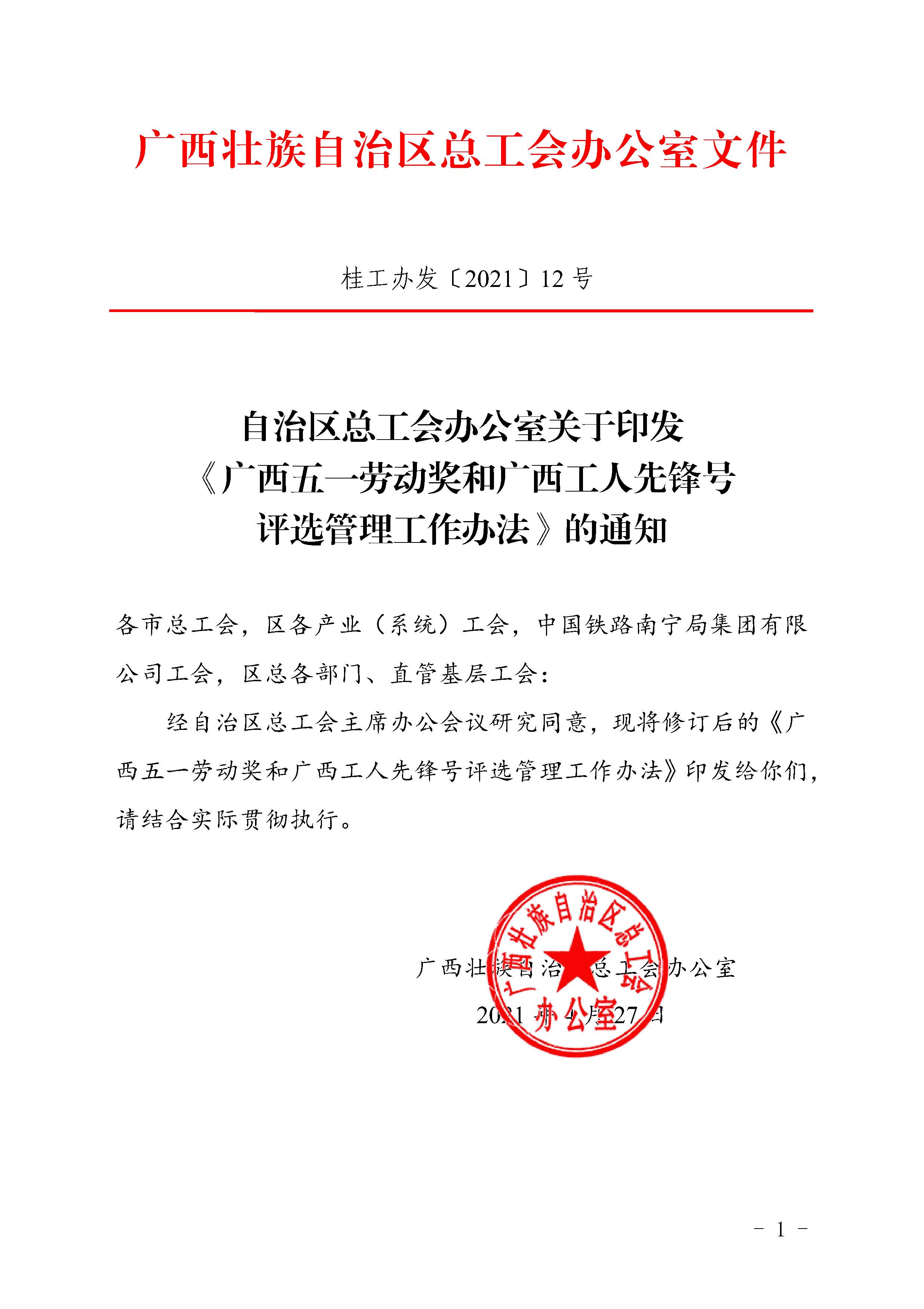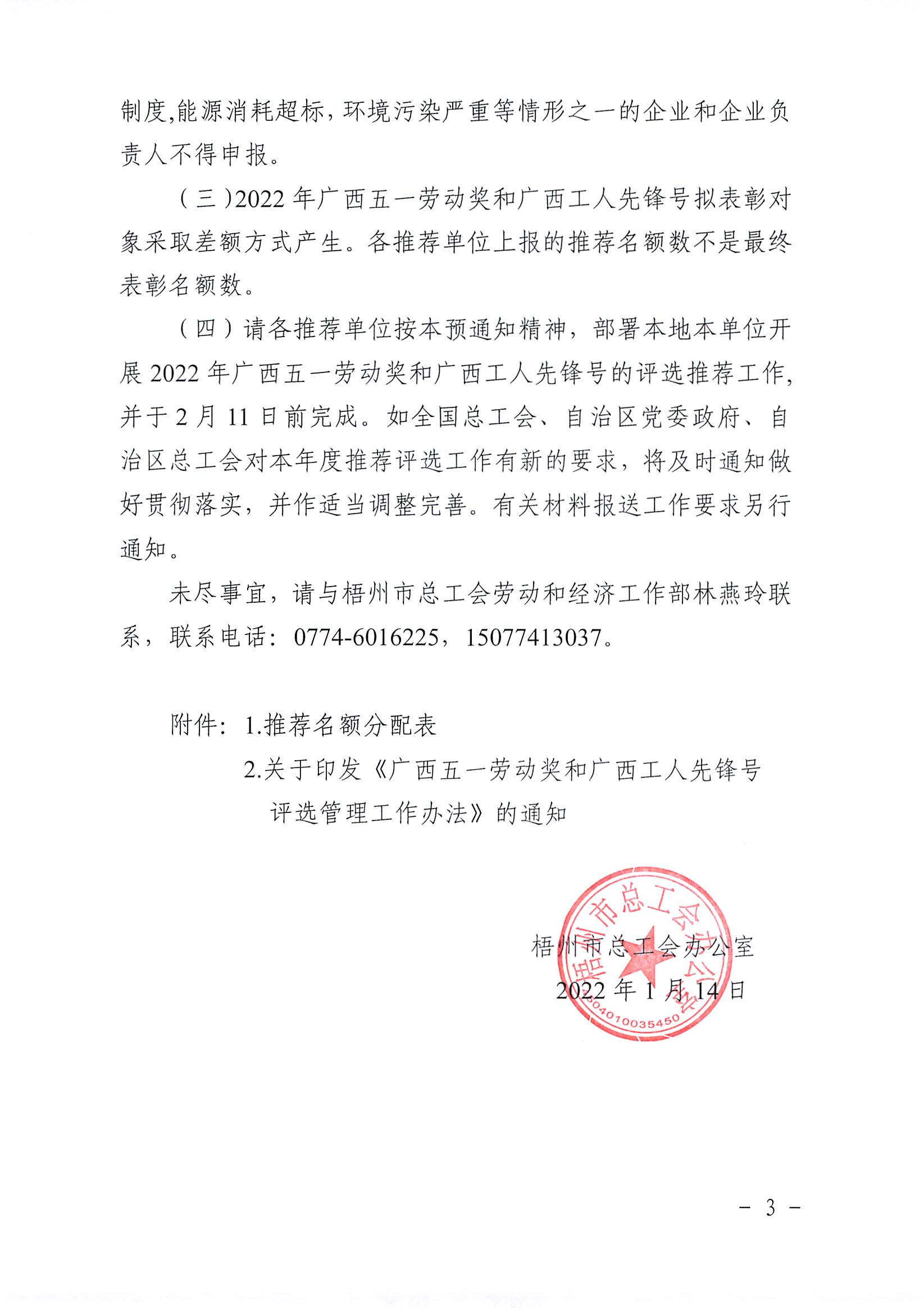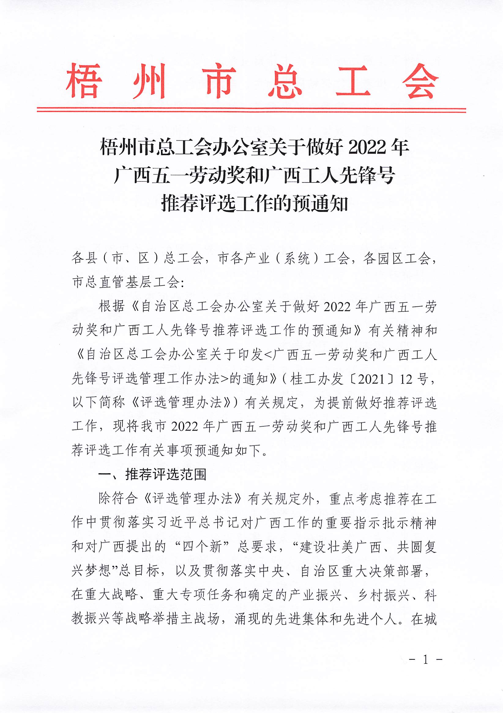 梧州市總工會辦公室關(guān)于做好2022年廣西五一勞動獎和廣西工人先鋒號推薦評選工作的預(yù)通知
