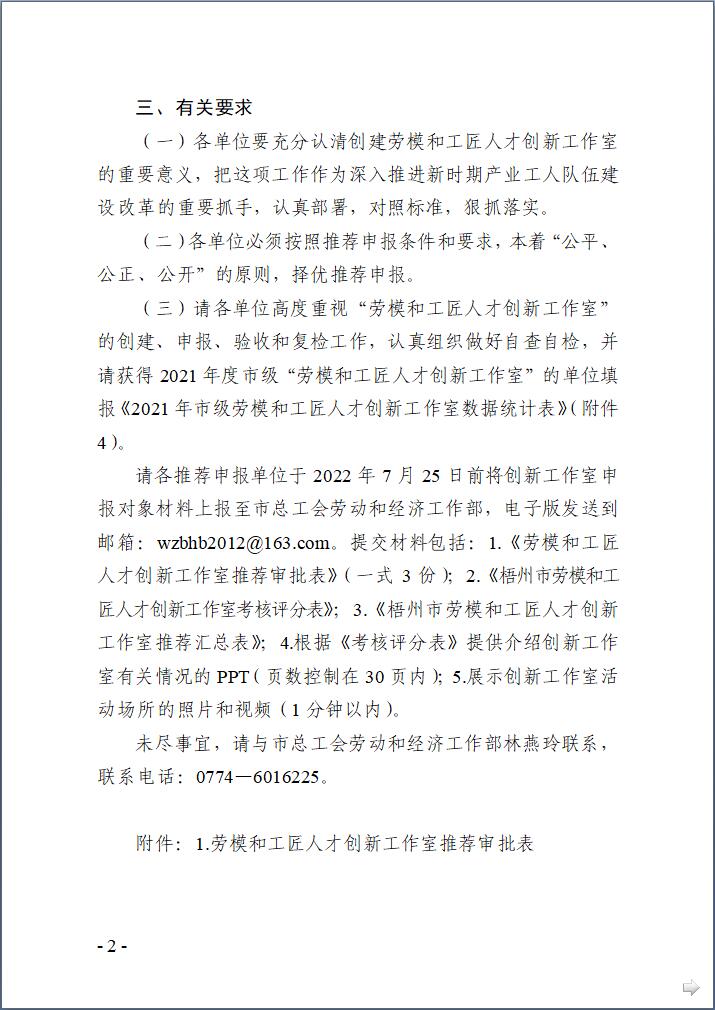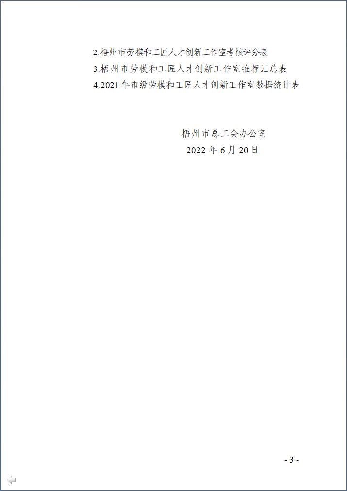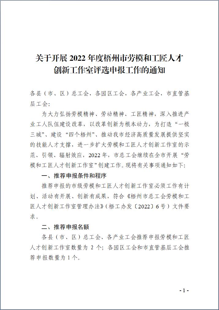 關(guān)于開展2022年度梧州市勞模和工匠人才創(chuàng)新工作室評(píng)選申報(bào)工作的通知
