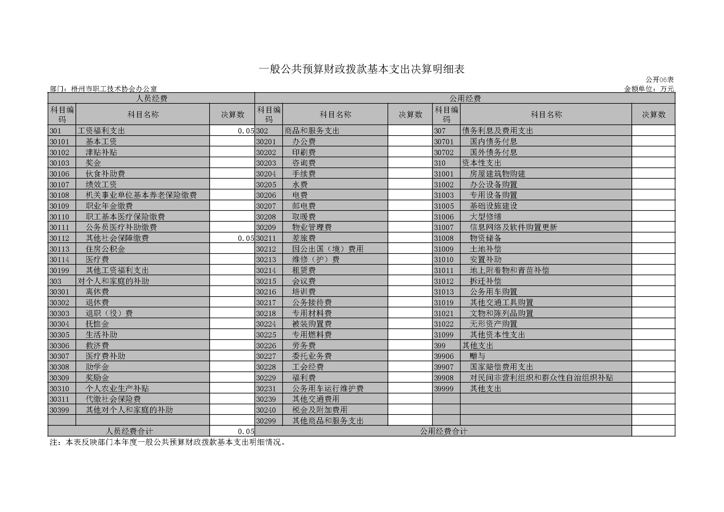 梧州市職工技術協(xié)會辦公室2021年單位決算