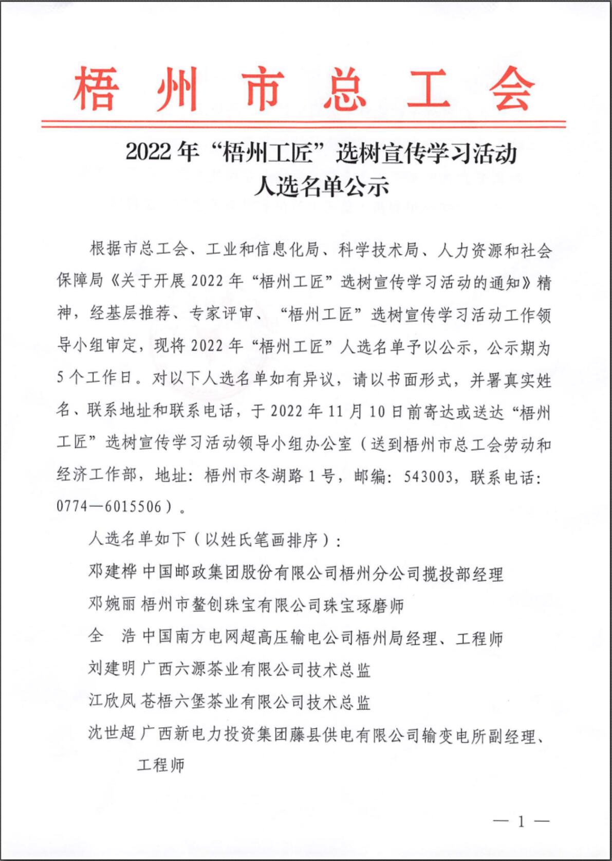 2022年“梧州工匠”選樹宣傳學(xué)習(xí)活動人選名單公示