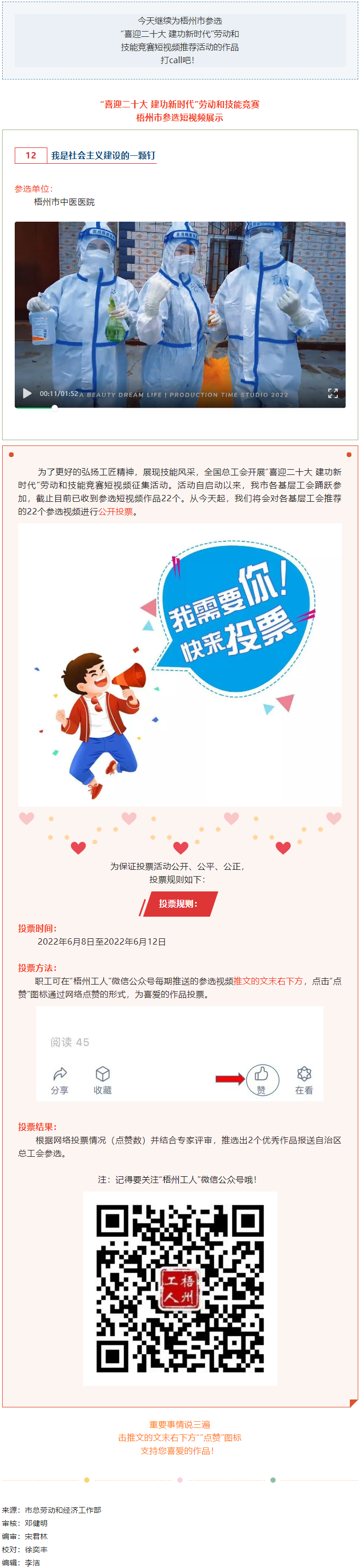 梧州市中醫(yī)醫(yī)院參選作品丨“喜迎二十大 建功新時(shí)代” 勞動(dòng)和技能競(jìng)賽短視頻投票活動(dòng)開(kāi)始啦!