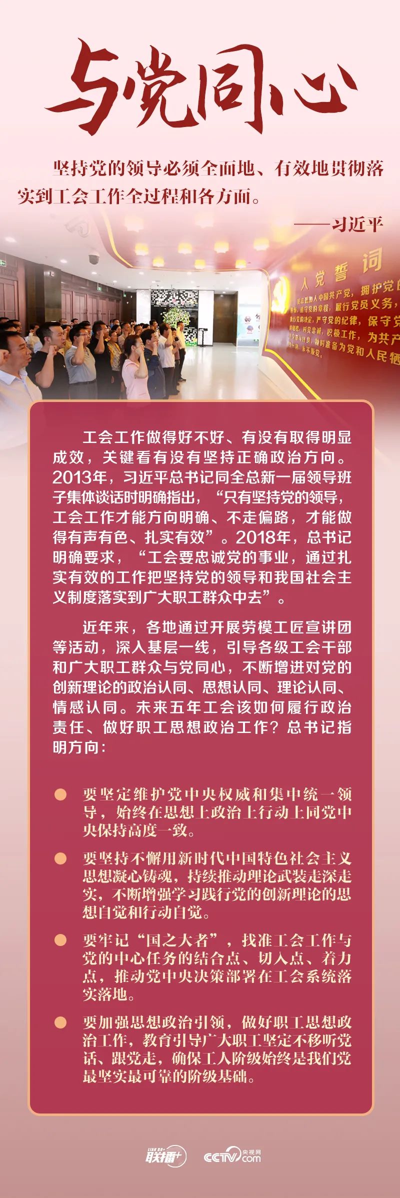 “堅持黨對工會的全面領(lǐng)導(dǎo),任何時候、任何情況下都不能動搖、不能偏離。”