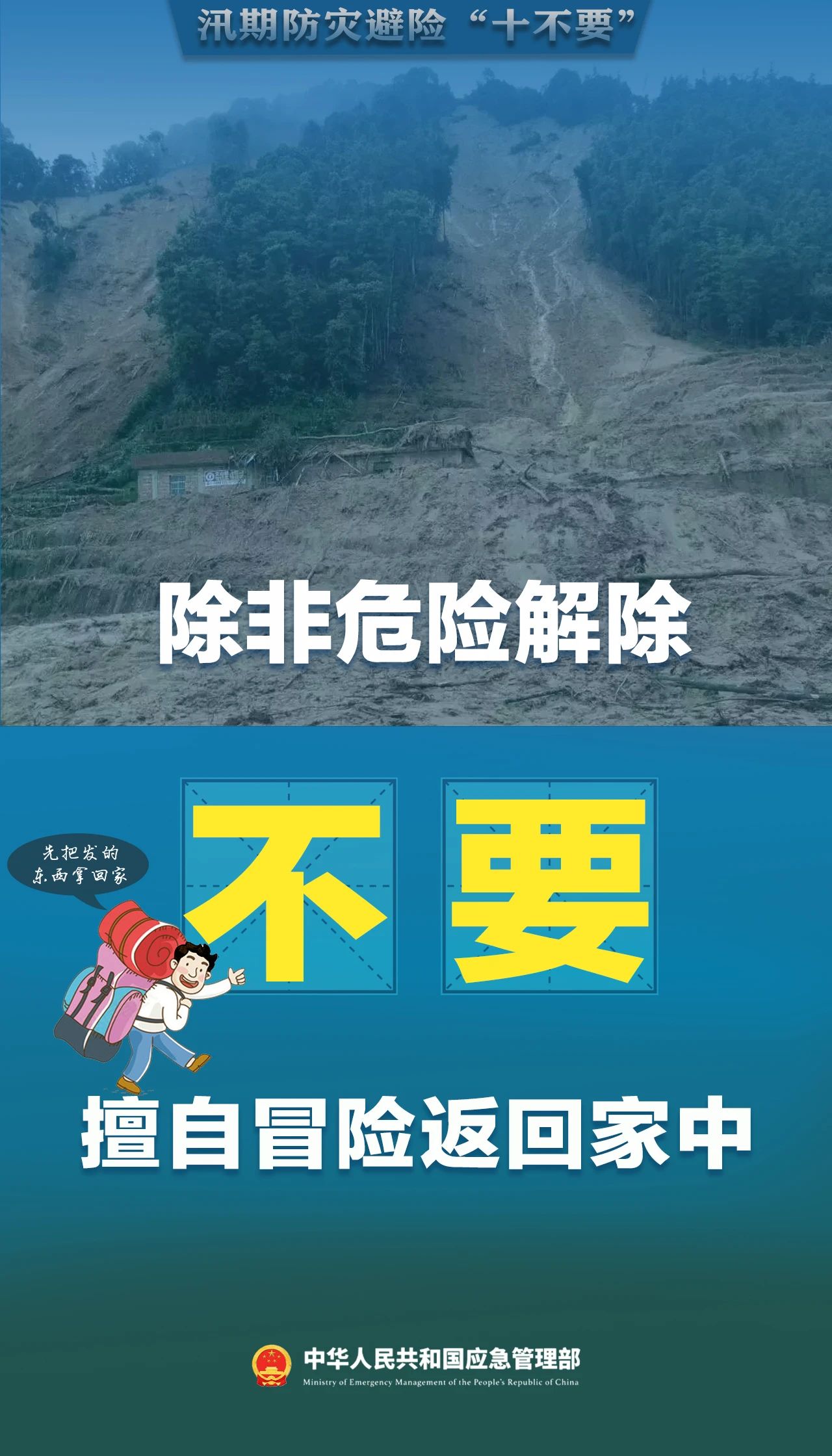 險(xiǎn)情解除前,嚴(yán)禁轉(zhuǎn)移避險(xiǎn)人員擅自返回撤岀區(qū)域或者其他危險(xiǎn)區(qū)域。